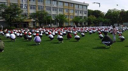 昨日に引き続き、朝の活動で全員が校庭へ集合しました。