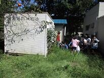 大きな地震で建物の水道管が壊れた時のために学校の入口に応急給水栓があります。