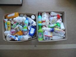 のために回収した洗剤や柔軟剤などのプラスチック容器を引き渡しました。