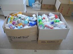 大きなトイレットペーパー用の段ボール箱に2箱集まりました。