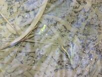 黒い点々がオタマジャクシです。(右は拡大写真)