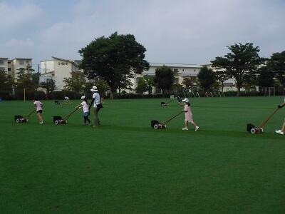 とても手のかかる作業ですが、参加してくださる皆さんのおかげで本校の美しい芝生が保全されているのが分かります。