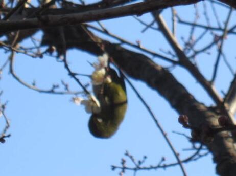 ウメ(白梅)にメジロが来ていました