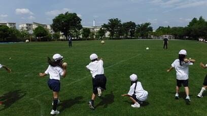 ボール投げ。いわゆる「遠投」の動きを初めて体験する子供もいたようです。