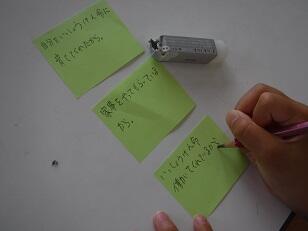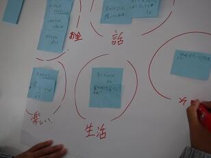 個人作業の後は、グループで付箋紙を持ち寄り、似ているものがあれば類別します。