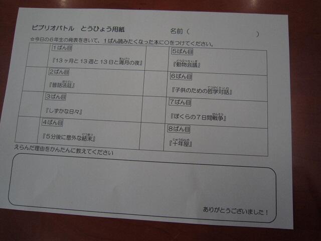 発表が終わったら投票で一番読みたくなった本を選びます。