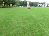 刈り高を上げて少し乾いている周りの部分の芝刈りをしました。