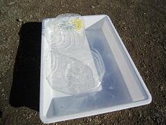 バットに少し水を張って、下の穴から給水させて乾燥を防ぎます。