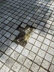 遊歩道のタイルや浅い側溝が木の根の影響や劣化により