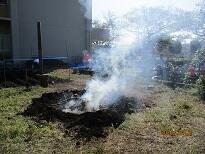 学校用務職員が火を起こして、ジャガイモを焼きました。