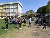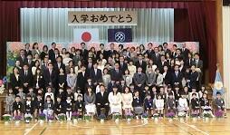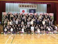 式後、記念写真です。その後、各学級に行って、教科書を配布したり、
