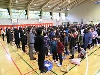 校庭で予定していた始業式の場所を急きょ体育館へ変更して行いました。