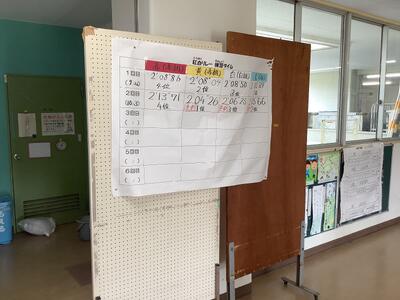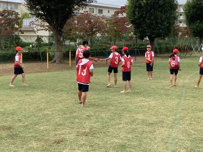 給食前の時間に、リレーの選手が集まり練習をしています。