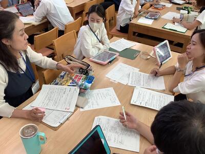 6年生の社会の授業を終えて、研究協議会を行ないました。