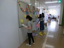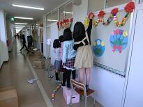 机やいすを運んだり、1年生の教室を飾ったり、1年生への配布物を準備したりしました。
