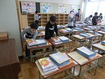 教科書一冊一冊確かめながら机の上に置いていきます。