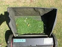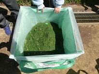 芝刈り機のバッグに貯まった芝   集めると1.5袋にもなりました