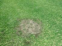 ホールカッター(ゴルフのホールをつくる道具)で芝を切り出すと