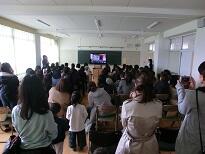 全体会を体育館で行い、その後、学年や学級の懇談をしました。