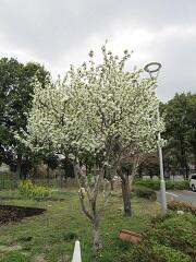 以前ご紹介した駐車場脇のヒメリンゴは満開です。