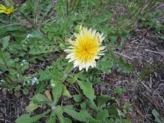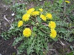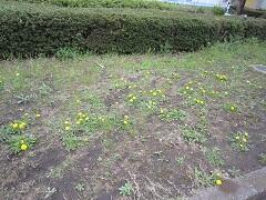 プール前の在来種タンポポ(カントウタンポポ)の群落にたくさんの花が咲いています。