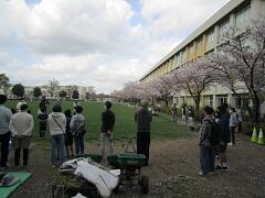 4月3日、9時00分~10時00分に芝生管理作業を行いました。