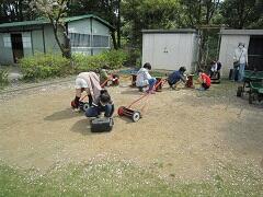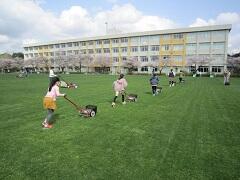 みなさんの年間3時間のご奉仕で1年間緑の芝生校庭を維持しています。