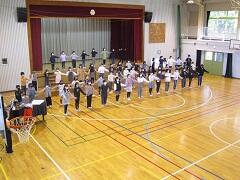 6年生の団長・副団長を中心に、上学年が3年生とグループを作って