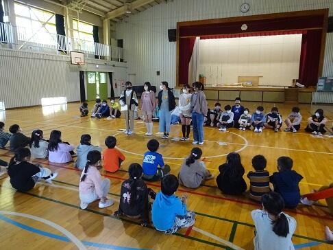 1年生は、いろいろな姿勢で聞いています。6年生との二人きりの世界に入り込んでいるように思えます。