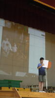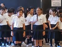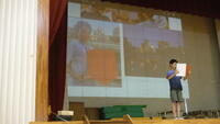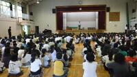 大塚篤志さんの被爆地派遣成果報告を、終業式終了後に全校児童に向けて行いました。
