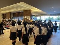 今日の終業式では、司会の合図とともに私語が一斉に止み、話を聞く態度が見られました。
