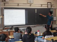 4年生 算数「わりざん」の学習を行っていました。割り算の工夫の仕方を一人一人が考えていました。代表の児童が黒板を使って発表していました。