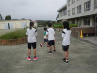 今日は校庭で「わかくさ学級」の子供たちが体育を行っていました。体を十分にほぐした後、校庭を各々が自分の体力に合わせて走っていました。体力向上に取り組みました。