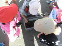 今日は校庭のあちらこちらで、2年生が「虫」を取っていました。バッタを捕まえてみんなで観察している様子もありました。生き物を大切に育てる気持ちを育てていました。
