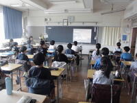 今日の朝は、自転車の安全な乗り方などについて、各クラスで安全指導を行いました。月に一度、朝の時間を使って安全に関する指導を継続的に行っています。
