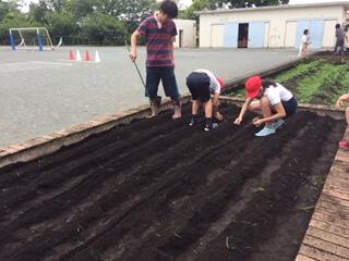 午前中、PTA園芸サークル「みつばち」の皆さんが学校に来てくださいました。学級園の草取りや、畑の土の整備などをしてくださいました。