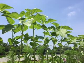 校庭の畑や花壇、プランターでいろいろな植物、作物が育っています。1年生が育てている朝顔もきれいな花を咲かせています。2年生が育てているミニトマトも、見るからにおいしそうな実がついています。3年生が育てているキャベツも大きく育っています。チョウチョの幼虫が、あっちこっち食べてしまっていますが、「それだけおいしい、ってことだよ!」とうれしそうに話してくれた男の子の表情が印象的でした!