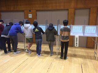 最後のまとめで、有権者として投票をすることの大切さと、しっかりと自分の考えをもって判断することの大切を教えてくださいました。今日の体験を生かし、興味や関心、当事者意識を高めながら、来るべき18歳を迎えていきたいですね。