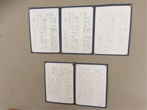 先日、校内の書初め展のことをお伝えしましたが、わかくさ学級の廊下の壁にも、力作が展示されています。ぜひ、観てくださいね!