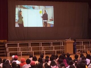 今朝は体育館で児童集会を行いました。今日は、保健委員会による発表でした。インフルエンザに感染しないための心構え、感染が広がらないようにするポイント、感染しにくい身体にするために需要なことなどを、ビデオにまとめて発表しました。実際の生活場面を上手な演技で伝えたり、クイズ形式で見ている人に参加してもらったりするなど、工夫された内容でした。保健委員会のみなさん。ありがとうございました!