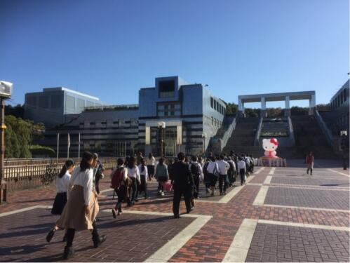 モノレール、電車を乗り継ぎ、永山駅から学校まで最後の歩き。だんだん疲れてきてはいますが、しっかりと歩きます。