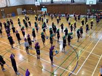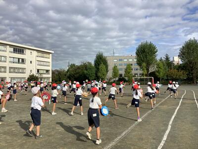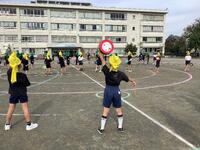 1時間目は雨天のため体育館で、6時間目は校庭で練習をしました。