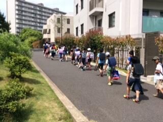 列が広がりすぎないこと、間を空けすぎないこと、他の歩行者や自転車などに気をつけることなどを意識しながら歩くことがめあてです。