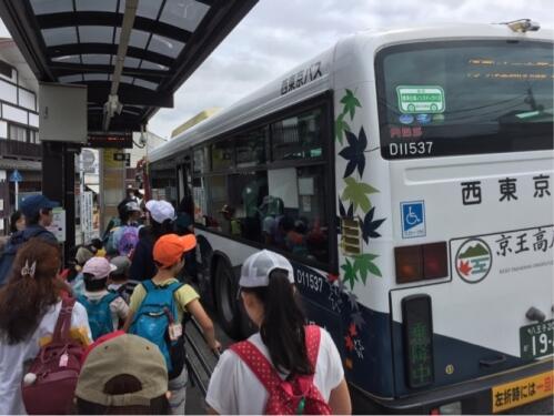 無事に高尾駅に着きました。ここからは、路線バスにのって、ふれあいの里を目指します。発車オーライ!