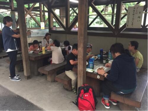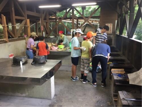 お腹が空いてきました。お昼ご飯は、みんなで作るカレーライスです。作業が始まりました。