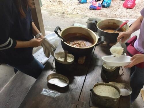 ようやく、カレーと飯ごうで炊いたご飯が完成しました。