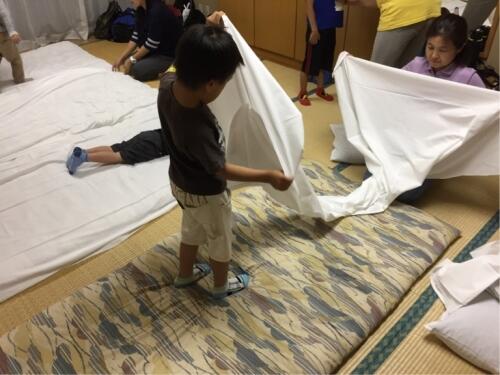 ナイトハイクに出る前に、布団の支度を頑張りました。