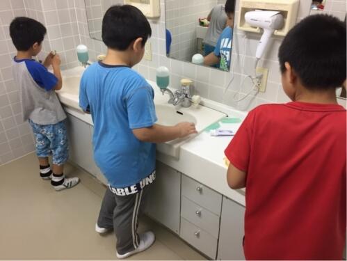 それぞれの部屋に入り、避難訓練をすませると、すぐにお風呂の時間です。