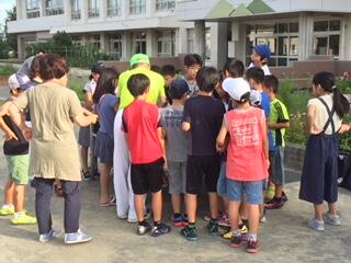 いよいよ夏休みがスタート。夏休みのスタートの合わせて、地域の方々の主催による「ラジオ体操」が始まりました。今日が初日です。朝6時30分、校庭に行ってみると、子供たち、保護者の方々、そして運営してくださる地域の方々が集まっていました。6時30分に始まるラジオの放送に合わせて、みんなで体操をし、身体をほぐしました。