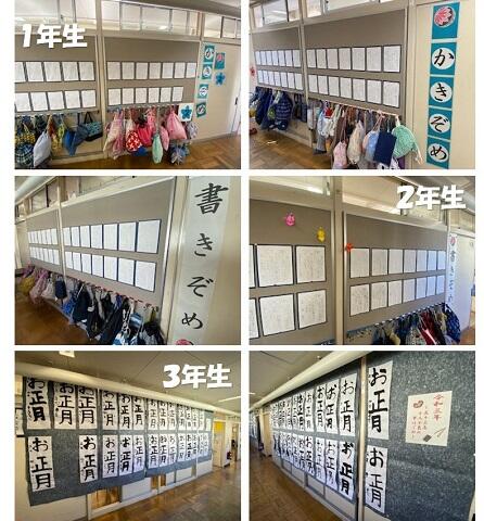 1月18日(月)から校内で「書初め展」を行っています。新しい1年が始まり、一人一人の子供たちが新鮮な気持ちをもちながら取り組んだ書初めの作品を、各教室の廊下の壁などに展示をしてあります。
